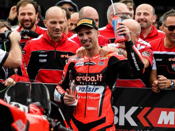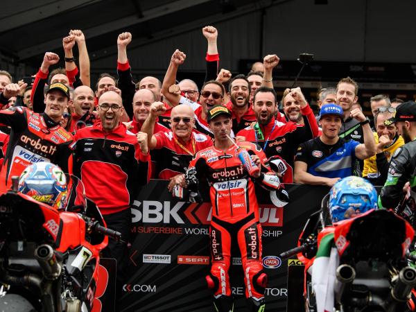 Das Aruba.it Racing - Ducati Team erreichte mit Marco Melandri am ersten und Chaz Davies am dritten Platz ein Doppelpodium beim ersten WSBK-Rennen in Australien. Nach einer langen Doppelführung von Kawasaki mit Tom Sykes in Führung gefolgt von Jonathan Rae. In der 14. Runde konnte Marco Melandri Jonathan Rae überholen und schließlich in der 18. Runde, vier Runden vor Schluss, in Führung gehen.