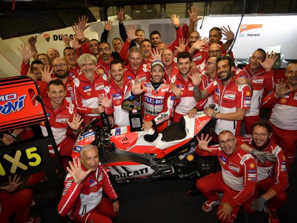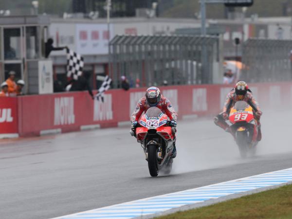 Nach einer spannenden letzten Runde konnte sich Andrea Dovizioso gegen Marc Marquez behaupten und gewann den MotoGP in Japan für Ducati, wodurch sich Ducati Platz 2 mit 273 Punkten hinter Honda mit 294 Punkten in der Herstellerwertung sichern konnte.