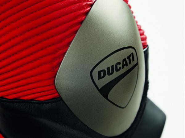 Weiters ist für Ducati auch der Komfort ein wichtiges Thema. Der hohe Komfort wird dabei durch die Auswahl an Materialien erreicht. Känguru-Leder wird wegen seiner guten Eigenschaften von vielen professionellen Rennfahrern ausgewählt. Da Känguruleder dünner ist, ist es ideal in Sachen Passform und Leichtigkeit und bietet trotzdem sehr guten Schutz. Um optimale Bewegungsfreiheit zu garantieren wurden triaxiale elastische Inserts in den Anzug integriert.