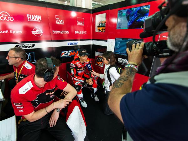 Das Aruba.it Racing - Ducati Team hat mit Marco Melandri am dritten Platz ein weiteres Podium beim ersten Rennen in Imola gewonnen. Der Italiener war vierter in der Superpole und konnte dank eines guten Starts gleich in der die Führenden verfolgen. Dank seiner guten Pace konnte er den dritten Platz einfahren und somit sein viertes Podium in diesem Jahr erreichen.
